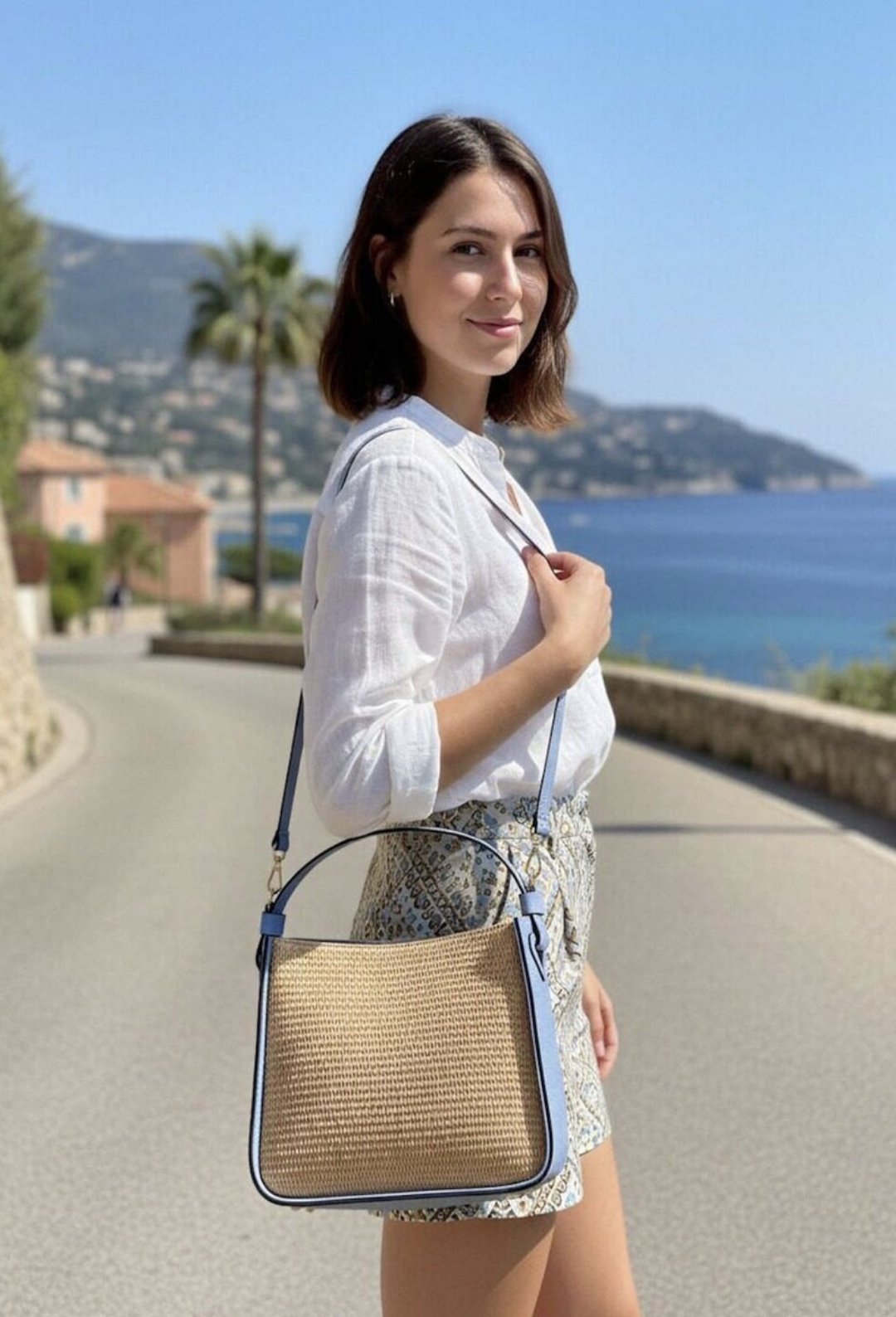 Sac à main en cuir véritable et paille de raphia, fabriqué en Italie
